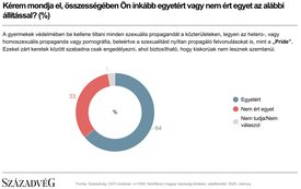 Ezzel szemben a megkérdezettek egyharmada (33 százaléka) nem kifogásolná a közterületen zajló szexuális propagandát.