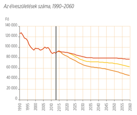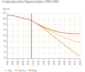 Az uniós prognózisok még borúsabb jövőt jósolnak. Igaz, az előttünk álló közel másfél évtizedben lassúbb népességfogyást valószínűsítenek, mint az ENSZ szakértői: 2050-re 9,5 milliós lélekszámot prognosztizálnak. Ám szerintük ezután a demográfiai hullámvasút lejtmenetét alig akadályozza majd valami. 2060-ra nyolcmillió alá kerül a népességszám, 2100-ra pedig szerintük még az ötmilliót sem érjük el. E számokat nézve egyáltalán nem vigasztaló, hogy térségünk országai még nálunk is nagyobb népességfogyást könyvelhetnek el az évszázad végére.