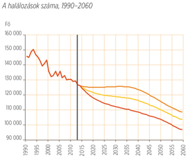 A népességfogyás ugyanis csak az egyik aggasztó mutató. Földházi Erzsébet demográfus adatai szerint a társadalom elöregedése szintén keményen sújtja majd a következő nemzedékeket. A szakember szerint 2006-ban már többen voltak a 65 évesnél idősebbek, mint a 15 év alatti gyerekek. A prognózisok pedig azt mutatják, ez az arány tovább romlik: 2060-ra a 65 évesnél idősebbek adják majd a népesség egyharmadát, két és félszer többen lesznek, mint a 15 évesnél fiatalabb gyerekek.
