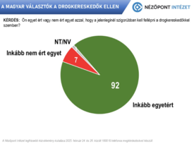 A választók elsöprő többsége, 92 százaléka támogatja, hogy szigorúbban kell fellépni hazánkban a drogkereskedőkkel szemben. A kormányzati szándék mögött pártpolitikai kötődést felülíró konszenzus van Magyarországon és minden társadalmi csoport legalább 85 százaléka egyetért a kérdésben – derül ki a Nézőpont Intézet friss kutatásából.