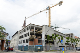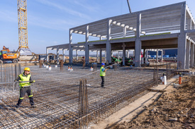 A Nemzeti Gyártó-Kutató-Oktató Középüzem épületének építkezése Debrecenben