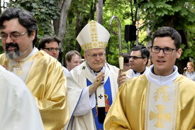 Erdő Péter az egyházmegyei nap lezárásaként a főegyházmegye papságával közösen mutatott be szentmisét. A bíboros szentbeszédében hangsúlyozta: nem kell minden nemzedéknek új kereszténységet kitalálnia, hanem újra és újra „vissza kell találnunk magához Krisztushoz, mert az egyház Jézus Krisztus tanítványainak közössége”.