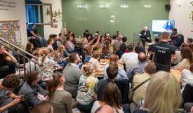 Erdő Péter a túlnyomórészt fiatalokból álló, a „csillárról is lógó”, a kávézó előtti utcán is hömpölygő népes hallgatóság előtt elmesélte, hogy annak idején többször meghívta Magyarországra Ferenc pápát. Általában ezekre a meghívásokra az a válasz érkezett, hogy nem tud jönni. – Ahányszor hívtam korábban, mindig megkérdezte: „Jók vagytok?” Erre mondtam: „Igyekszünk jók lenni!” Legutoljára viszont már azt mondtam neki: