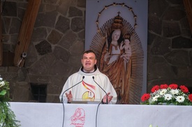 Urbán Erik ferences rendi tartományfőnök a csíksomlyói búcsú szentmiséjén a Kis- és Nagysomlyó-hegy közötti hegynyeregben Csíksomlyón 2023. május 27-én
