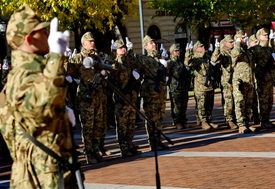 A 12. egységes alapkiképzést teljesített tartalékos állomány tagjai eskütételük után Békéscsabán 2023. november 16-án