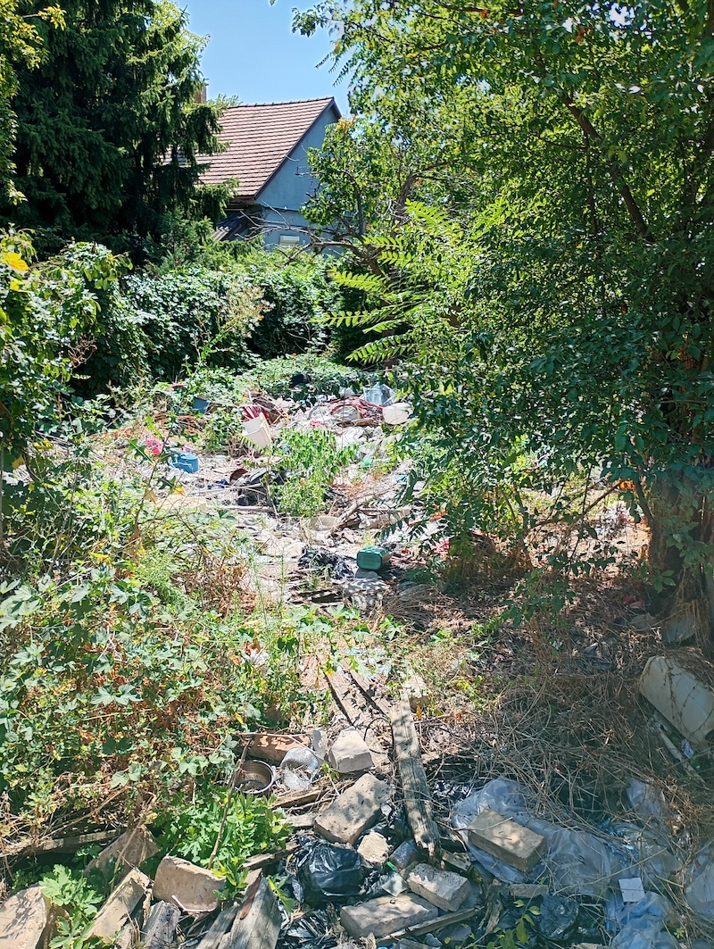 A házaspár tőszomszédságában egy romos ház áll, korábban önkormányzati lakás volt, de a problémás bérlőket kiköltöztették. Az udvarban azonban ott maradt egy nagy halom szemét mag egy szétvert gépkocsi. A kerületi önkormányzat nem törődik az ingatlannal, a szomszédok pedig reménykednek, hogy nem költözik be egy csapat drogos. Hogy nem alaptalanul félnek, arról mi magunk is meggyőződünk, amikor a metró irányába haladva az erdő egy ágakkal takart része felől öngyújtókattogást hallunk. Amikor közelebb érünk, egy férfi körvonalai rajzolódnak ki az lombok takarásából, éppen valamilyen szert készít elő használatra… A hölgy búcsúzásként a lelkünkre köti, hogy erősen nyomjuk meg a tollat, amikor a cikket írjuk, nekik ugyanis nem hallatszik el a hangjuk a fővárosi és a kerületi vezetésig.