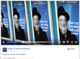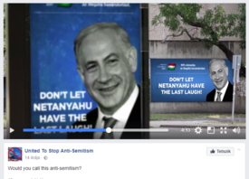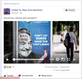 A Facebookot megnyitva egy különös hirdetésre lettünk figyelmesek, amelyben George Soros és a nemzeti konzultáció plakátjai tűntek fel. A videót nézve rögtön feltűnt, hogy a szerkesztők manipulált, hazug képkockákkal operálnak: a plakátokat még véletlenül sem eredeti formájukban mutatják be. A feliratok angol fordításban jelentek meg, és az első képkockán George Soros fején a büdös zsidó firka volt olvasható. A videóban megjelent még Benjamin Netanjahu izraeli miniszterelnök is, mintha a nemzeti konzultációs plakátokon George Sorosén kívül az ő képmása is szerepelt volna. „Ezt antiszemitizmusnak neveznéd?” – tették fel a pofátlan kérdést a videó készítői. A válaszokkal már valószínűleg nem voltak megelégedve, hiszen frissen közzétett videójukat sebtiben törölték is (ezért a videót magát már sajnos nem tudjuk megmutatni, csak több képernyőfotót – hisz az internet nem felejt).
