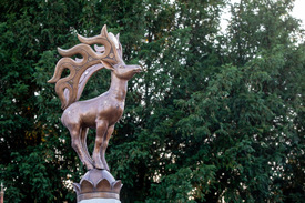 Az újkígyósi emlékmű Gera Katalin szobrászművész alkotása, a csodaszarvast ábrázolja.
