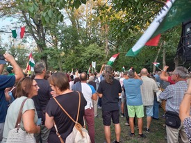 Nincs, de osztogatnak színes kiadványt, az én kezembe is nyom egyet egy molett fiatalasszony. Miután megkérdem tőle, miért csinálja, azzal indokolja, mert ő szabad embernek született, még az anyjának is ellentmond, ha kell, és két gyermekét szintén így neveli. Mielőtt gratulálnék, odasóz még egyet, mint gazdasszony a pörköltnek: „Utálom az Orbánt, azt kellene elküldeni.” Egyébként a kiadvány újságnak szégyen, röpcédulának drága, viszont Cicero képe uralja.
