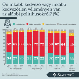 A felmérésben, amelyet júniusban ezer felnőtt megkérdezésével készítettek, az áll, hogy a Volodimir Zelenszkij ukrán elnökről kedvezőtlenül vélekedők aránya májusról júniusra 65-ről 68 százalékra nőtt, míg Joe Biden amerikai elnök esetében 62-ről 64 százalékra emelkedett. Ugyanakkor a Vlagyimir Putyin orosz elnökről negatív véleményt megfogalmazók tábora nem változott, májusban és júniusban egyaránt 72-72 százalék volt.
