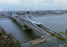 A még szürke festésű Szabadság híd 1985-ben, felújítás idején