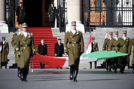 A zászlót Áder János köztársasági elnök és Kövér László házelnök jelenlétében a Himnusz hangjaira a honvédség díszegysége vonta fel. Az eseményen közreműködött a központi katonazenekar és a lovas díszegység.