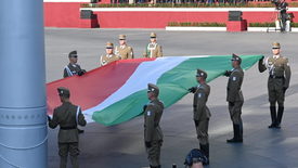 Katonai tiszteletadás mellett, Novák Katalin köztársasági elnök jelenlétében felvonták Magyarország nemzeti lobogóját az augusztus 20-ai állami ünnepen, vasárnap reggel Budapesten, az Országház előtti Kossuth Lajos téren.