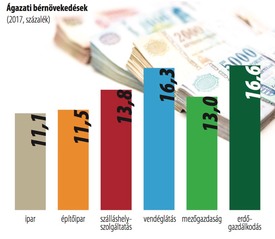 A gazdaság teljesítőképességének javulása a nettó átlagkeresetekre is jó hatással volt. A 2009-es, alig 125 ezer forintos szintről 2017 áprilisára 201 500 forintra emelkedett. A kimagasló bérnövekedés és bérfelzárkózás számokban azt jelenti, hogy idén, az első öt hónapban a versenyszférában 10,6, a költségvetési szektorban pedig közel 16 százalékkal nőtt a bérszínvonal, döntően a többéves bérmegállapodásoknak köszönhetően. E folyamatok nyertesei között vannak azok a munkavállalók, akiket jellemzően minimálbérért foglalkoztattak munkaadóik.