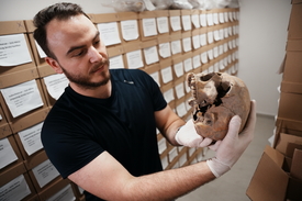 Kovács Bence genetikus tart egy fehérvári koponyát