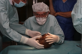 Kásler Miklós vizsgálja III. Béla koponyáját