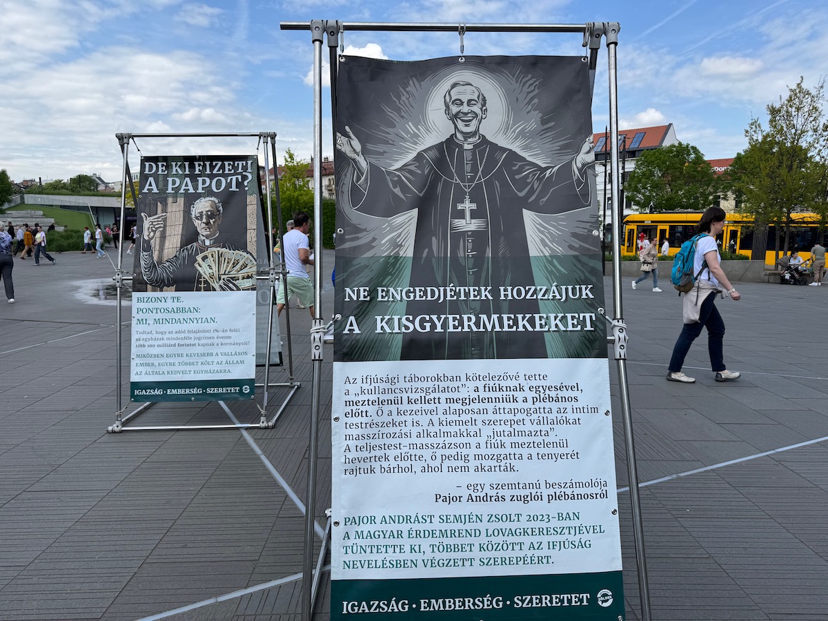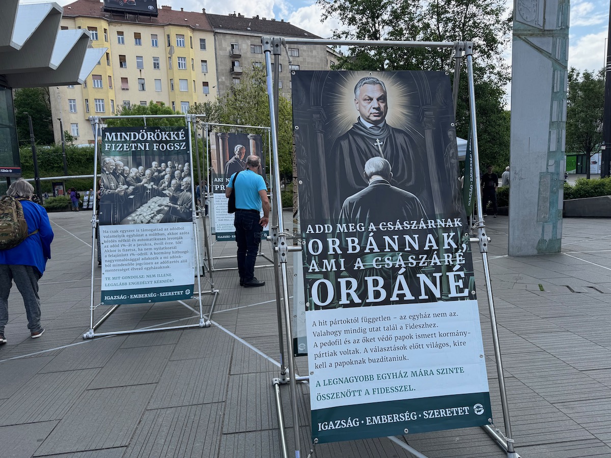 „Igazság, emberség, szeretet” – hirdetik a Barabás Richárdot ábrázoló plakátok. Ezzel kontrasztba állítva olyan ízléstelen rajzok tarkítják a Széll Kálmán teret, mint az Orbán Viktort egyszerre papként és császárként ábrázoló kép, vagy a papokat hataloméhes pedofilnak beállító poszterek.
