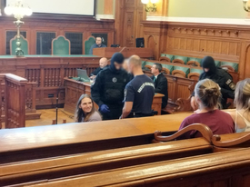 A tárgyalás alatt, amelyen ma a német nagykövetség képviselője is jelen volt, ezúttal is antifasiszták hangoskodtak a bíróság épülete előtt, mozgalmi popzenét üvöltettek, időnként egy nő hisztérikusan kiabált németül, máskor antifa harci rigmusokat üvöltöttek.