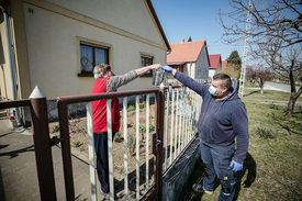 Útközben arról beszélgetünk, hogy a településen négy főből álló fiatal csapat segíti az időseket a rendkívüli helyzetben. Az önkormányzat egyik dolgozója home office-ban működteti a „logisztikai központot”, ahol fogadják a helyiek telefonhívásait. Az ebédkiszállítás mellett ugyanis be is vásárolnak a nyugdíjasoknak, de arra is akadt már példa, hogy gyógykezelésre vittek beteget a megyeszékhelyre, a veszprémi Csolnoky Ferenc Kórházba.