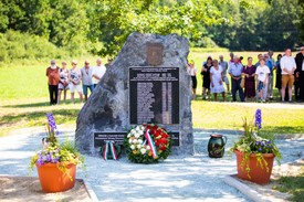 Az ünnepélyes keretek között leleplezett és megkoszorúzott – hat tonnás bazaltkőből formált – emlékművön a fegyveres felkelés 25 résztvevőjének nevét örökítették meg.
