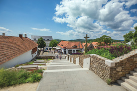 De vissza a Mádl Ferenc térre, és irány az apátság! A hozzá vezető és az elmúlt évben új arculatot kapott úgynevezett apátsági lépcsőn fokról fokra felfelé haladva megismerhetjük a monostor csaknem ezeréves történelmét, illetve útközben megpihenhetünk az új Pünkösdi liget mediterrán növényei között. A domb tetején ott áll a kívül-belül megújult, igaz, néhol még felállványozott apátság, múzeumában pedig egész nyáron eredetiben nézhetjük meg egyik első hazai nyelvemlékünket, A tihanyi apátság alapítólevelét, amelyben I. András király 1055-ben összeíratta a monostor birtokát.