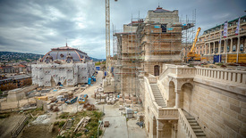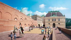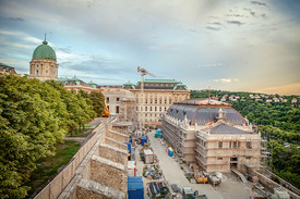 A budai Vár déli részén sétálva egyre jobban kirajzolódik a Nemzeti Hauszmann Terv keretében újjáépülő Csikós udvar épületegyüttese. Az impozáns látványt nyújtó Stöckl-lépcső gyakorlatilag már elkészült. A lovarda falait védőháló borítja, de a tetőben és néhány kivillanó kőfaragványban már lehet gyönyörködni, valamint egyre látványosabb a még teljesen felállványozott főőrségi épület is.