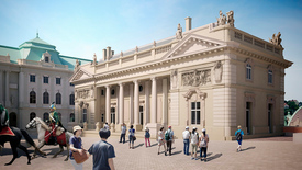 A főőrségi épülettel egy építészeti egységet alkotó Stöckl-lépcső is az eredeti, Ybl-tervek szerint épül újra. Itt is cél a hiteles rekonstrukció: a szürkegránit lépcsőfokok azonosak lesznek a régivel. A lovardát Hauszmann Alajos tervei alapján építik újjá, eredeti funkcióin túl rendezvénytérként is működik majd, így többek között bálokat, művészeti vásárokat is befogadhat. A lovas programok kiszolgálására 16 ló tartásához megfelelő istállót alakítanak ki a várfal alatti földrézsűbe rejtve. A lovardatérben díszes famennyezet készül az eredeti tervek szerint.