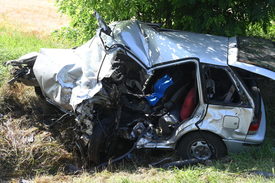 Összeroncsolódott személyautó Kóka közelében, a 3105-ös út 30-as kilométerében, ahol a gépjárművet vezető sülysápi nő az autójával ismeretlen okból áttért a szemközti forgalmi sávba és frontálisan összeütközött egy másik autóval 2023. június 14-én