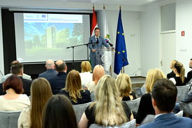 Viszkok Mihály, Budapesti Műszaki Szakképzési Centrum kancellárja elmondta: csaknem 4,3 milliárd forintot nyertek el az informatikai tudásközpont kialakítására, több mint 3000 négyzetméteren újul meg a központ helyszínéül szolgáló épületegyüttes Óbudán. Az informatikai tudásközpont része lesz egy korszerű oktatási épület 100 fős nagyelőadóval és 8 modern számítástechnikai laborral, valamint kialakítanak egy különálló laborépületet és kollégiumi épületrészt is. A projekt keretében a legkorszerűbb eszközökkel szerelik fel a tudásközpontot; ez garantálja, hogy a diákok már a képzés során naprakész technológiákkal dolgozhatnak, ami jelentősen növeli munkaerőpiaci versenyképességüket – mutatott rá.
