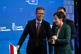 A tárcavezető Roxana Minzatuval, az emberekért, a készségekért és a felkészültségért felelős uniós biztossal az ülés után közösen megtartott sajtótájékoztatóján Hankó Balázs kiemelte, hogy a magyar elnökség két fontos, „minden területet átfogó” prioritása a demográfiai kihívások kezelése és az Európai Unió versenyképességének erősítése, a mai ülésen pedig ezekkel kapcsolatban a családügyi kérdések is fókuszba kerültek.