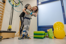 – Figyelek Nimród jelzéseire; ha egy terápiát örömmel végez, és élvezi a terapeuta társaságát, látom, hogy sokkal hatékonyabb és látványosabb is a fejlődése. A folyamatos fejlesztésnek köszönhetően egyre több dologra cáfol rá; ha apránként is, de mindig haladunk előre. A szakemberek ugyanakkor az agy plaszticitása, azaz alkalmazkodóképessége miatt még ma sem tudnak biztosat mondani arról, hogy miből mi következik. Van olyan, hogy nem értik, hogyan tud Nimi megcsinálni egyes dolgokat, míg másokat meg miért nem – mondja Edina, miközben Nimróddal az Apróka szakemberei éppen a járást gyakorolják.