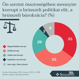 Mint arra az agytröszt felmérése rámutat, a magyar válaszadók 35 százaléka nagymértékben korruptnak, 33 százaléka inkább korruptnak tekinti a brüsszeli vezetőket, illetve az uniós bürokráciát.
