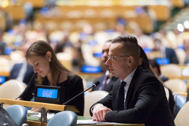 Szijjártó Péter szerint amióta tavaly hat ország elutasította a szóban forgó csomag elfogadását, az ENSZ-ben „gyakorlatilag szakmányban gyártják” azokat a határozatokat, amelyek a globális migrációs csomagra és a globális menekültügyi csomagra hivatkoznak, és ezáltal folyamatosan kísérletet tesznek arra, hogy ezt a két csomagot a nemzetközi jog részévé, ott hivatkozási alappá tegyék.