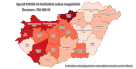 Az oldal térképe szerint eddig Budapesten (134 925) és Pest megyében (102 821) regisztrálták a legtöbb fertőzöttet. Ezt követi Borsod-Abaúj-Zemplén (41 153), Győr-Moson-Sopron (41 077) és Hajdú-Bihar megye (39 133). A fertőzésben legkevésbé érintett megye Zala (16 190).