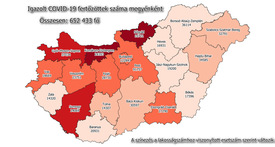 Az oldal térképe szerint eddig Budapesten (122 847) és Pest megyében (91 757) regisztrálták a legtöbb fertőzöttet. Ezt követi Győr-Moson-Sopron (37 034), Borsod-Abaúj-Zemplén (36 114) és Hajdú-Bihar megye (34 585). A fertőzésben legkevésbé érintett megye Zala (14 320), illetve Tolna megye (14 307).
