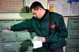 Az április 8-ai országgyûlési választás értesítõit kézbesíti egy postás Budapesten egy XIII. kerületi társasházban 2018. február 12-én. MTI/Máthé Zoltán