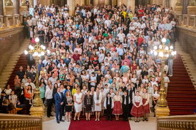 Budapest, 2022. szeptember 3. Hornung Ágnes, a Kulturális és Innovációs Minisztérium (KIM) családokért felelõs államtitkára (elsõ sor, b5), Varga-Bajusz Veronika, a Tempus Közalapítvány fõigazgatója (elsõ sor, b3), Márton Zsuzsanna, a Kárpát-medencei Családszervezetek Szövetségének (KCSSZ) elnöke (elsõ sor b4) és Petneházy Attila korábbi fideszes országgyûlési képviselõ a Kárpát-medencei Családszervezetek Szövetsége (KCSSZ) családi napján az Országházban 2022. szeptember 3-án. A 2022 a Cselekvõ Nemzet Éve kezdeményezés rendezvényét a Miniszterelnökség Nemzetpolitikai Államtitkárság támogatásával tartják meg.