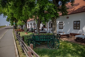 Régi idők hangulatát őrző, fehérre meszelt falú, piros muskátlibokrokkal díszített tornácos csárda fogadja a Tiszafüred felől a klasszicista stílusú Kilenclyukú hídon át Hortobágyra igyekvő utazót.