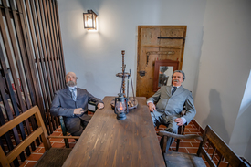 Az italpult szomszédságában elhelyezett asztaluknál mintha megállt volna az idő. Egy jó pohár bor mellett talán éppen a hortobágyi gulyás- és csikósbojtár közötti híres pusztai párbaj esélyeit latolgatják, amelyről az idősebb pályatárs a Sárga rózsa című kisregényében írt rendkívüli drámai erővel.
