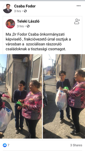 A város önkormányzati pénzből ötezer forint értékben 110 darab egészségügyi csomagot (lázmérővel, maszkokkal, fertőtlenítőszerrel) állított össze, amelynek szétosztásával a helyi cigány szervezeteket bízták meg. Miután Teleki László, az MSZP volt országgyűlési képviselője, korábbi romaügyi államtitkár, a Nagykanizsai Cigány Nemzetiségi Önkormányzat elnöke átvette a csomagokat a polgármestertől, másnap Fodor Csaba társaságában kezdte őket szétosztani. A kétszemélyes karitatív akciót a közösségi oldalán is megosztotta az alábbi felirattal: „Ma dr. Fodor Csaba önkormányzati képviselő, frakcióvezető úrral osztjuk a városban a szociálisan rászoruló családoknak a tisztasági csomagokat.” A bejegyzésben, amelyet Fodor Csaba is átvett közösségi oldalára, nem tett említést arról, hogy a csomagokat a polgármester döntése szerint az önkormányzat költségvetéséből bocsátották a helyiek rendelkezésére.