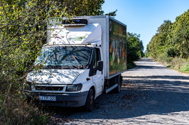 Ami az elhagyott furgont illeti, a sofőrülés melletti ablakot lehúzva találjuk, a kormány alatti indítókábelek műanyag tokját megbontották. Ez a lopott autókra jellemző. A jármű oldalán egy neves zöldség-gyümölcs kereskedő vállalkozás emblémája látható; a cégtől megtudjuk, hogy amint az az üzleti világban szokás, időnként leselejtezik és eladják a járműveiket. Ez a furgon is szabályos adásvételi szerződéssel került új tulajdonosához, aki embercsempészésre használta. Vagy úgy lopták el tőle a csempészek. Az is kiderül, hogy ez a módszer, mármint a piacra dobott céges járművek megvásárlása újabban gyakori az embercsempészek körében.