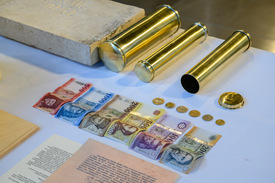 Az egyik korábban elhelyezett hengerben egy tudósítást találtak a főtemplom felszenteléséről, a másikban egy egyházmegyei névtárt és kilenc korabeli pénzérmét.