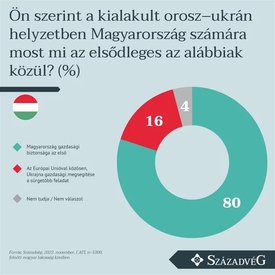 A közvélemény-kutatás rávilágít, hogy a kialakult háborús helyzetben 10-ből 8 magyar számára (80 százalék) Magyarország gazdasági biztonsága az elsődleges,
