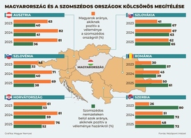 A szlovákok, a románok és a szerbek is kedvezőbben ítélik meg Magyarországot, mint a magyarok az ő országaikat. Ugyanakkor mindhárom esetben az elmúlt években a vélemények kiegyenlítődése figyelhető meg és a magyarok közel fele minden szomszédországot pozitívan ítél meg. Az osztrákok, a horvátok és a szlovénok azonban kritikusok Magyarországgal szemben, s ennek az ottani belpolitika az oka – derül ki a Nézőpont Intézet 2025-ös Magyarország-barométeréből.