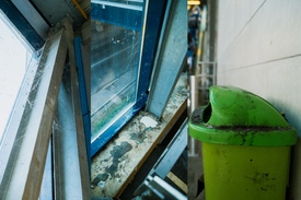 „a főváros két fotósa is végigdokumentálta a délelőttöt, a valóság viszont az, hogy még a legszembetűnőbb pókhálók eltávolítása sem sikerült maradéktalanul a buszállomás lépcsői felett.”