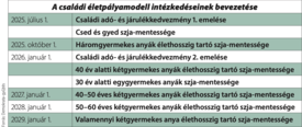 A kormány számításai szerint a háromgyermekesek szja-mentessége mintegy 200-250 ezer nőt érint majd, és mintegy 200 milliárd forintos tétel lesz a költségvetésben. A 40 év alatti kétgyermekesek mentességével jövőre 110-120 ezer anya tud élni, ez évente 120 milliárd forintos kiesést jelent a költségvetésnek. 2027-ben 210-230 ezer, 2028-ban újabb 210-230 ezer, 2029-ben pedig további 100-110 ezer anya részesül az adómentességben. Utóbbi lépések sorrendben várhatóan 231, 248, majd 124 milliárd forinttal terhelik a költségvetést. A legkisebb tételt, mintegy évi tízmilliárd forintot a csed és a gyed szja-mentessége jelenti majd. Fontos hozzátenni, hogy a szülési szabadság 24 hetére járó csed már eddig is magasabb volt a nettó keresetnél, mert csak személyi jövedelemadót vontak le belőle – júliustól már azt sem.