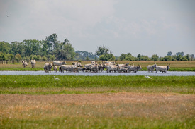 – Nehéz őket összeszedni, a bivalyokkal könnyebb – mondja Rózsa Péter. Pedig, mint megtapasztaljuk, azok is önfejűek, hiába próbáljuk hárman egyfelé terelni őket, úri kedvükben csak azért is az ellenkező irányba trappolnak el.