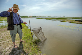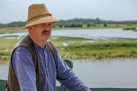 – Egykor nem a komputerektől, hanem a táji adottságokhoz alkalmazkodó, többféle tájhasználatot lehetővé tevő fokgazdálkodástól volt gazdag a magyarság. A víz élet. Egyensúlyt teremt a különböző gazdálkodási módok között. Ezek az ingyen kegyelmek – vallja Rózsa Péter, aki ennek jegyében önerőből alakította ki a birtokon a fokgazdálkodásra, vagyis az elöntéses gazdálkodásra alkalmas területeket. Ezek vizét a Keleti-főcsatornán és az abból eredő kisebb csatornák hálózatán keresztül a Tisza táplálja. Gazdag itt a madárvilág, kócsagot, gólyát, sirályt, vízityúkot, bíbicet látunk, utóbbit a gazda címermadarának mondja. De a víztükörből kikandikálva méretes nyurgapontyok is mutatják a hátukat, sőt, mint Rózsa Pétertől megtudjuk, süllő is akad itt.