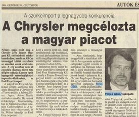 Perjés 1993-ban Nissant, 1994-ben Chryslert, 1996-ban viszont már Citroënt árult. Az alábbi képen miskolci Chrysler-szalonjuk megnyitásakor az SZDSZ-es polgármester, T. Asztalos Ildikó társaságában látható a Déli Hírlap 1994. október 11-ei felvételén, jobbról másodikként.