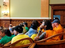 Ma is vagy két tucat, arcát egészségügyi maszkkal, sállal takaró, esetenként színes parókát viselő szélsőbaloldali bűnpártoló jelent meg a tárgyalóteremben, hogy ünnepelje a vádlottat, és a bíróság előtt is legalább ugyanennyi kommunista fiatal tervezett hangoskodni, a Hatvannégy Vármegye Ifjúsági Mozgalom azonban az összes ismert tárgyalási napra előre demonstrációt jelentett be oda, így a gyáván hatalmas vörös lepedők mögött bujkáló terroristaszimpatizánsok csak a Markó utca és a Bihari utca sarkán óbégathattak.